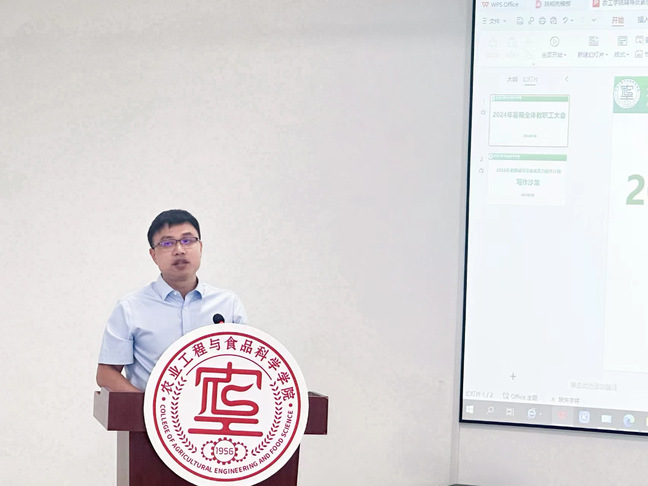 学院执行院长李志合传达学校专业技术岗位评聘工作的相关通知要求。对学院2024年度上半年工作进行了总结回顾,就暑期国家重点研发计划项目申报、中国农业机械学会2024年学术年会筹办、学位点梳理、学院文化空间建设等暑期工作进行了部署。他着重强调暑假期间要扎实做好学生安全、实验室安全等工作,坚决守牢安全稳定底线。