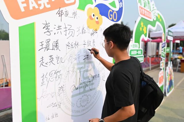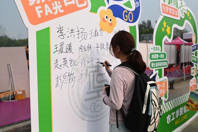 特色互动留记忆,打卡区域绽光彩。学院精心设计“你好新同学”背景墙,将专业特色元素巧妙融入其中,特色地标融入思政元素,引导新生能够坚定学农为农初心,厚植知农爱农情怀,勇担强农兴农使命。结合学生个性及兴趣,提供“不“椒”不躁、“茄”而不舍、光“芒”万丈、“萍”安喜乐等卡通蔬菜水果手举牌,营造轻松活泼氛围,记录开学新体验。设计贴有“一流学科”“国家一流本科专业”等学院关键词的打卡互动区,新生与家长在此拍照并签字留念。