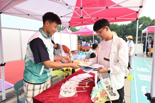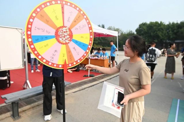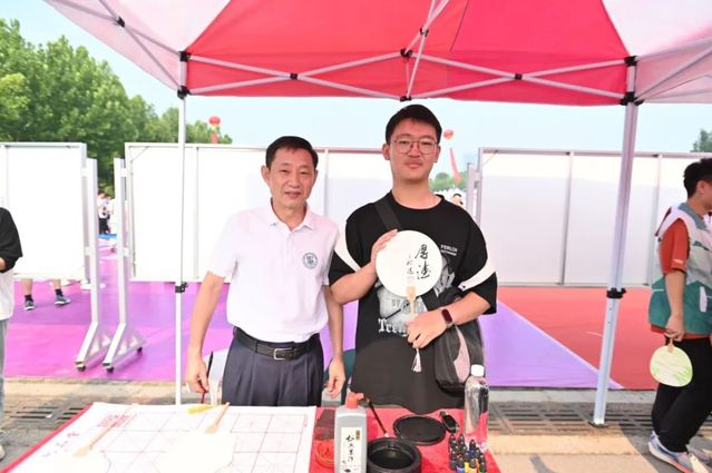 精心筹备专属礼,拉满初见氛围感。现场设置趣味十足的“幸运大转盘”,为新生送上印有学院logo的帆布包、卡套、笔记本等专属纪念品,由学院党委书记徐启达为学生现场题写祝福漆扇,更是为新生送上一份独特的惊喜,让新生们深切感受到学院的浓情关怀。