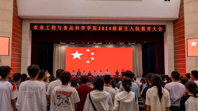 在校歌《你伴随我》声中,农工学院2024级新生入院教育大会圆满结束。
