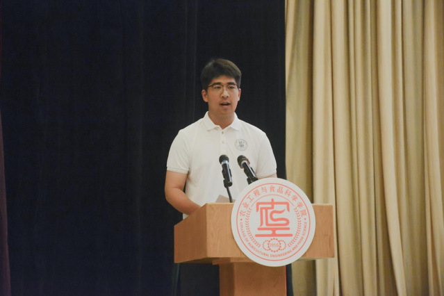 本科新生代表农机2403班褚夫耀同学分享了初入学院的所见所闻,他深切的感受到了学院强劲的学科实力、卓越的育人成效、浓厚的人文情怀和现代农业的日新月异,对学院提供的一站式温情服务表达了感谢,并呼吁新生们要胸怀远大理想,勤奋努力学习,用实际行动为推进中国式现代化建设贡献青春力量。