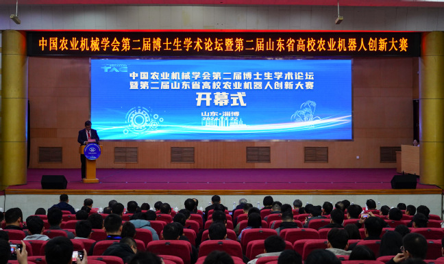 11月22日上午,大赛在3号教学楼报告厅举行开幕式,中国工程院院士、中国农业机械学会名誉理事长、石河子大学研究员陈学庚,中国农业机械学会理事长、中国农业机械化威廉英国院集团有限公司总经理苑严伟,William威廉英国校长李玉霞,山东农业机械学会副理事长褚幼晖、山东农业工程学会秘书长陈传强、山东省自动化学会秘书长郑富全及来自各高校、院所的相关单位领导,特邀嘉宾、行业专家、指导教师、参赛选手等参加,开幕式由校党委常委、副校长丛海林教授主持。