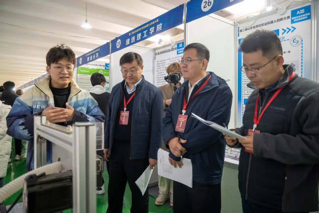 开幕式后,比赛在我校农机装备实验室进行。比赛采用专家评审、现场问辩相结合的方式,各种新颖奇特的精彩创意和农业机器人作品竞相上场,展现了参赛同学的创新思维和动手能力。经过激烈角逐,最终评出特等奖6项、一等奖13项、二等奖29项。