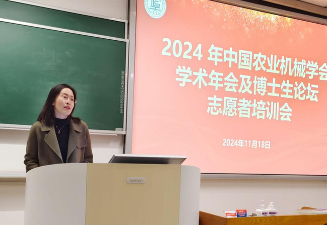 学院党委副书记、纪委书记姜素锦在培训会中强调,2024年中国农业机械学会学术年会是农机领域高层次、高水平、高规格的学术盛会,希望同学们能够弘扬志愿精神、践行服务理念、遵守组织纪律、履行工作职责,用最灿烂的笑容迎接每一位来宾,用最专业的态度解答每一个疑问,用最细致的服务保障每一个环节,在服务中增长专业见识、拓宽学术视野,为自身职业规划和未来发展积极赋能。