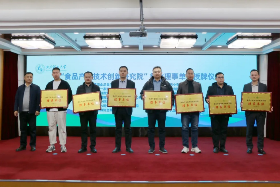 唐海军为“食品产业技术创新研究院”首批理事单位授牌。