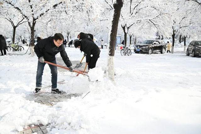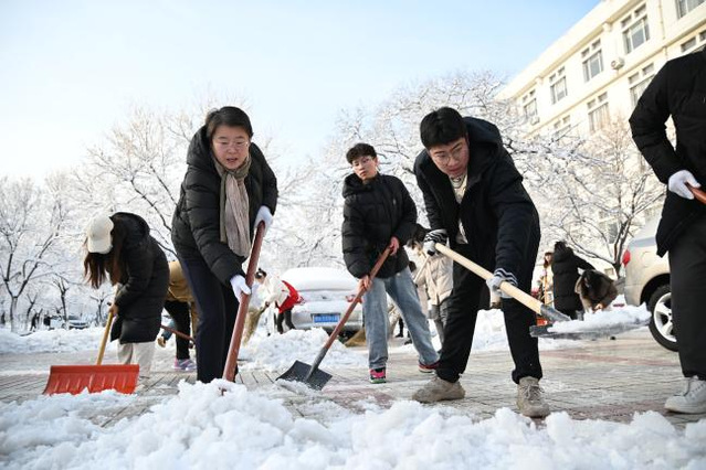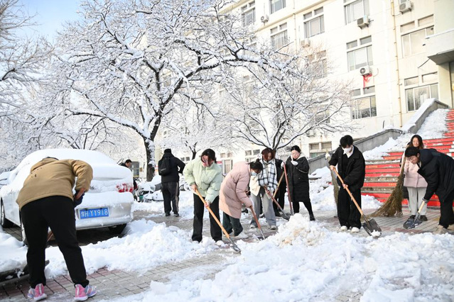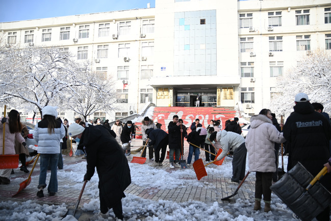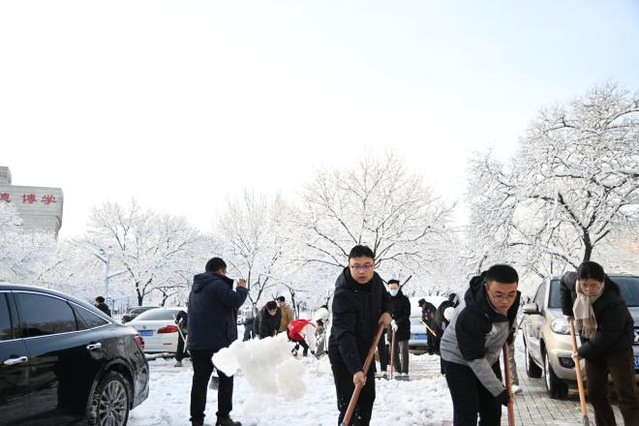 为方便师生出行,确保校园道路畅通,33,我院师生在教学楼周边区域及主要道路开展了扫雪除冰行动。我院领导班子成员、行政人员及学生党员、学生骨干志愿者积极投身此次扫雪除冰工作。