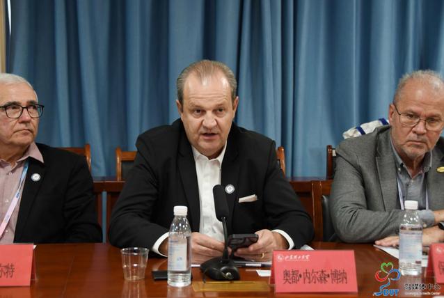 崔焕勇对客人表示欢迎,回顾了中巴、中匈在创新、文教合作领域取得的成果,介绍了学校在融入城市国际化建设中的贡献,希望与巴匈在青年学生交流、国际产学研平台建设、智慧农业研发及人才互引共用等领域开展合作。