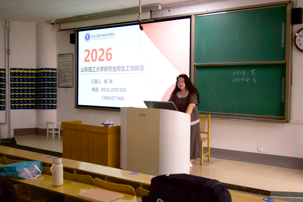 学院学科建设与研究生工作办公室主任郑彬作宣讲。宣讲内容丰富详实,不仅深入解读了2026年研究生招生政策、校内优秀生源培养办法及直博生选拔规则,还全面介绍了学院的研究生教育概况、学科建设成果、师资队伍实力与人才培养成效。宣讲过程中,郑老师结合近三年的招生录取数据及趋势变化,为在场学生细致剖析了当前考研的整体形势,并针对性地给出了报考策略建议。最后,郑彬老师特别鼓励本科生们尽早制定考研规划,明确奋斗目标,以积极的姿态投入到备考准备中。
