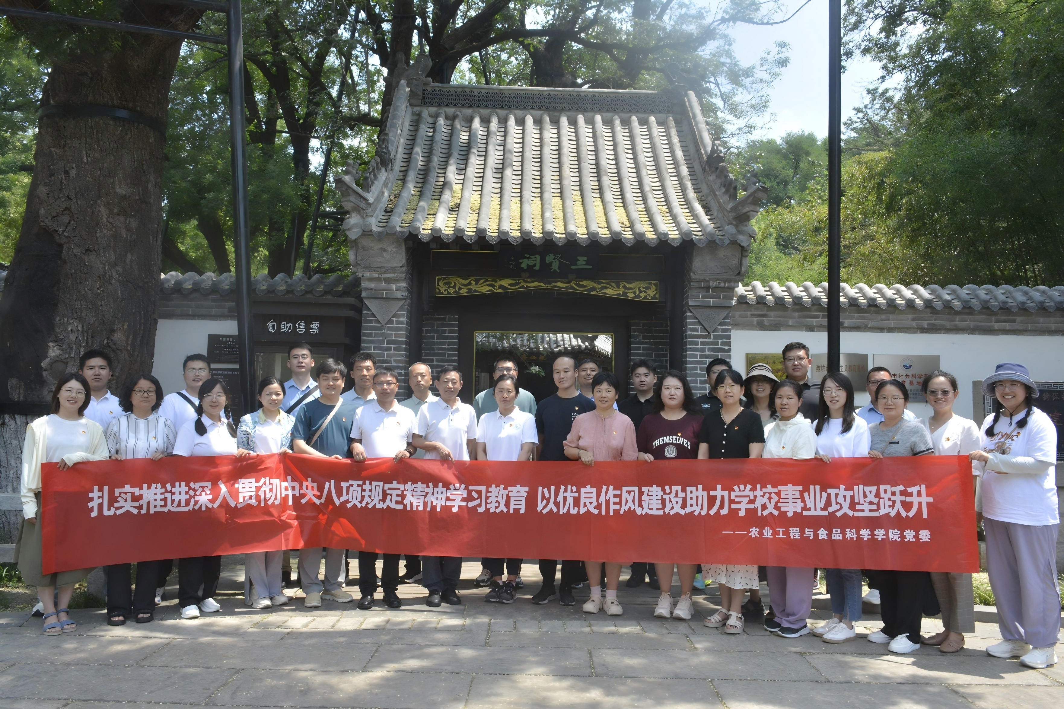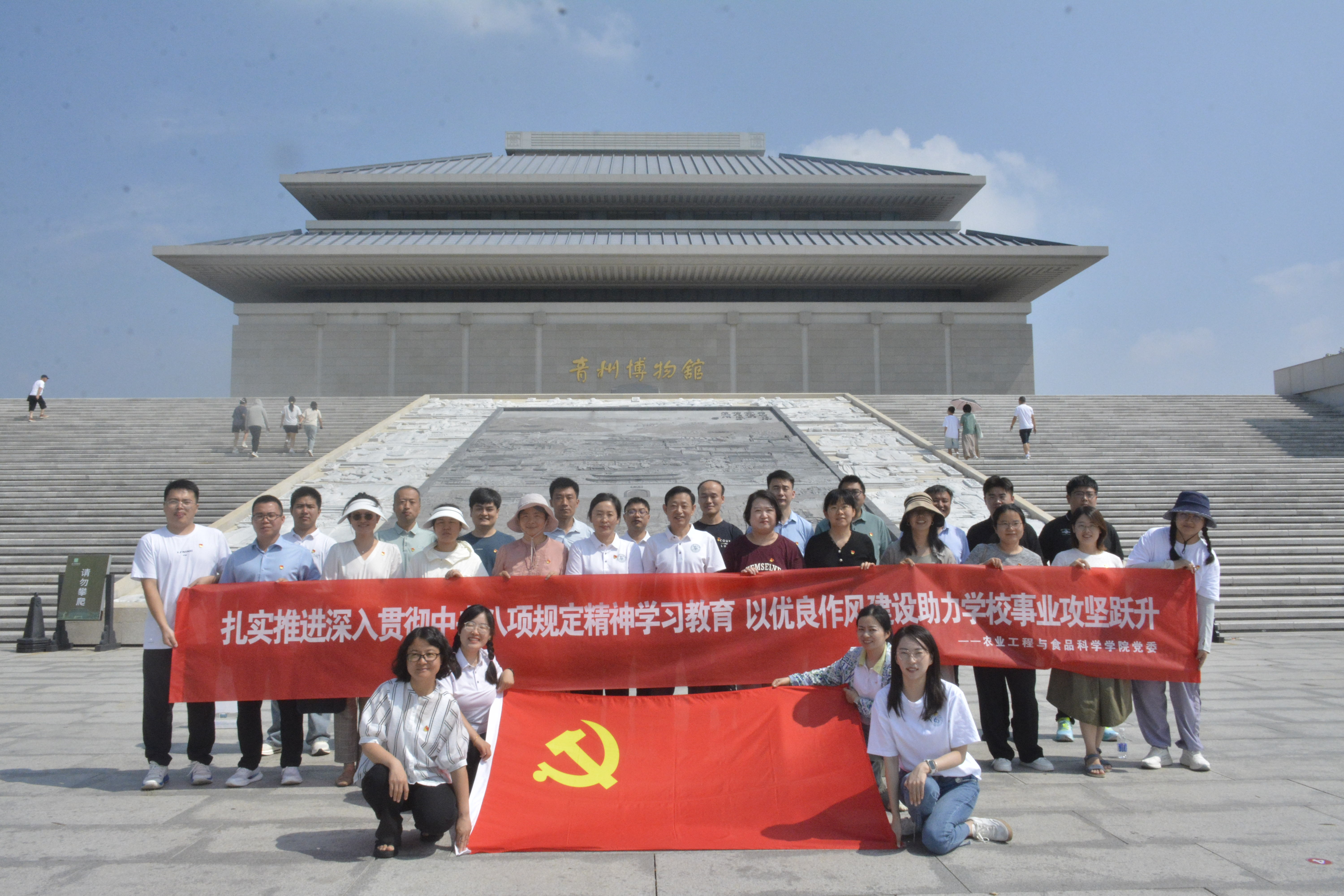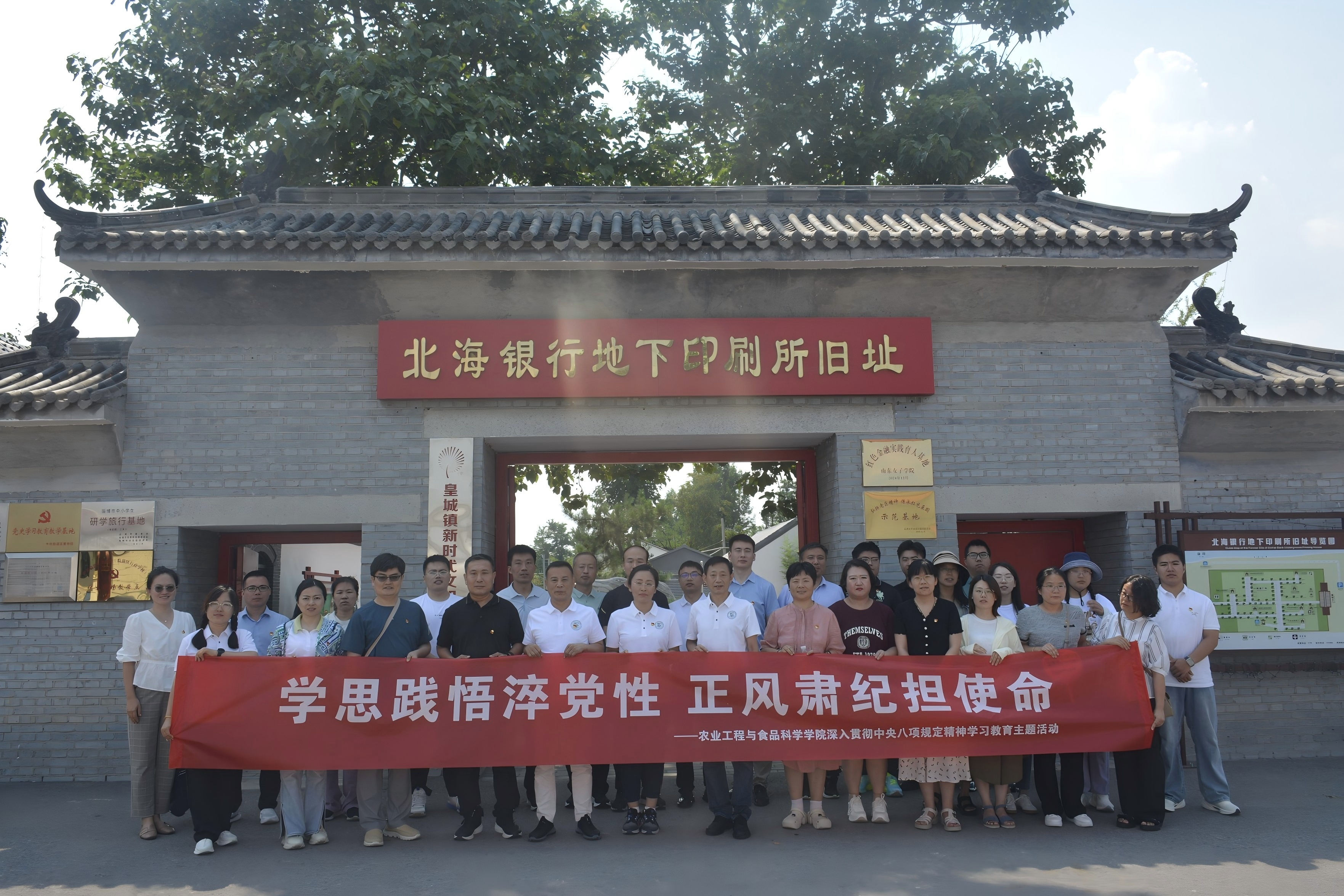 在中国共产党成立104周年之际,为推动深入贯彻中央八项规定精神学习教育持续走深走实,进一步加强党的作风建设和师德师风建设,7月17日,学院党委联合现代农业装备研究院共同组织教工党员、党支部书记赴青州博物馆、三贤祠和北海银行地下印刷所,开展学习教育现场教学。