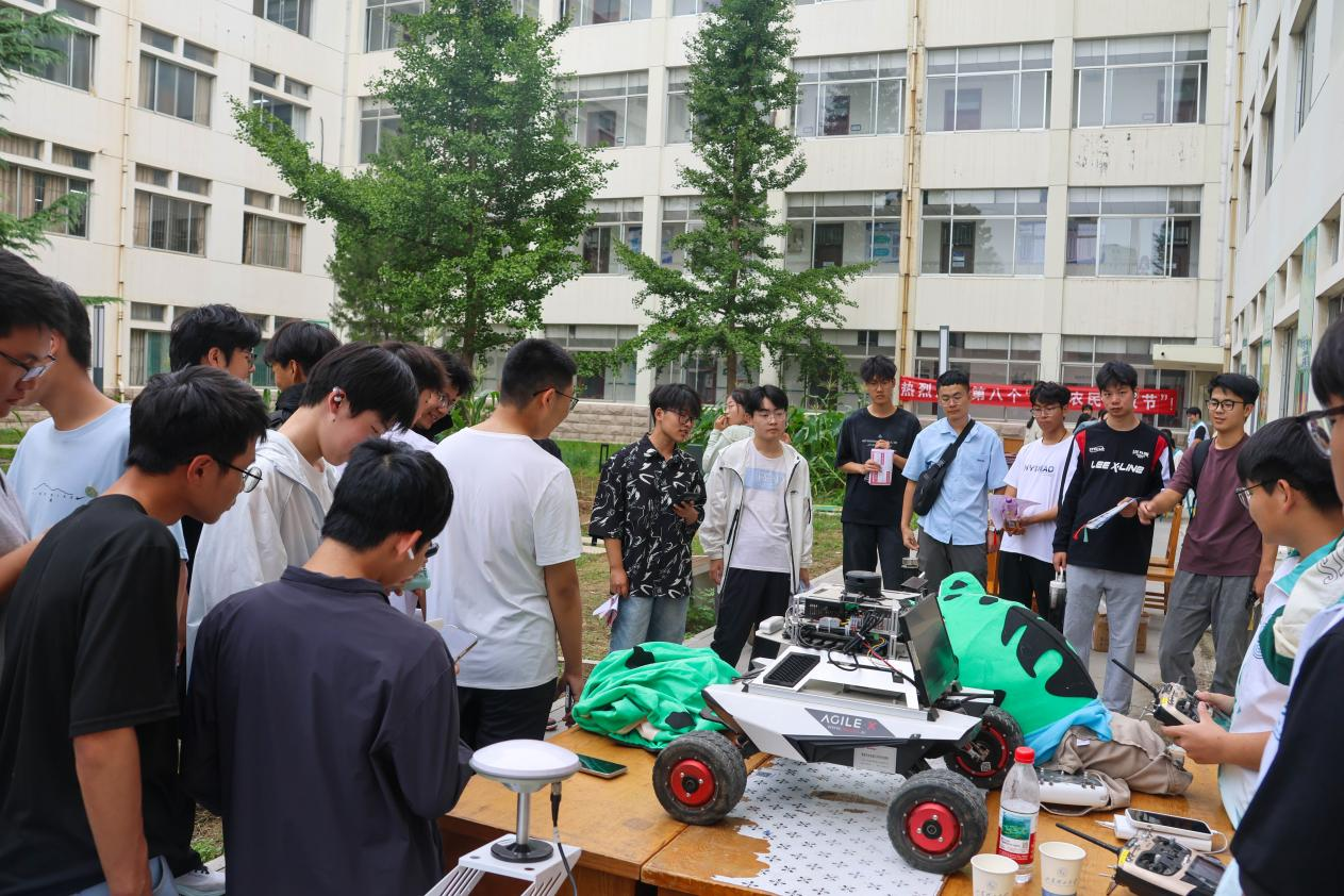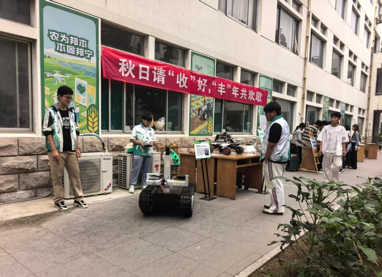 本次丰收节活动围绕文化体验、实践操作、知识科普三大维度共设置8项特色活动,让学生在沉浸式参与中感悟丰收意义、筑牢专业认知。在耕读园,“五谷丰登”活动通过“慧眼识谷”“蒙眼摸谷”的趣味互动,帮助同学们精准识别谷物种类、掌握谷物特征,再以谷物粘贴画创作激发创意,让大家在动手过程中深化对农作物的认知与热爱;“嘭嘭爆香”活动中,同学们在工作人员指导下分组体验爆米花制作,既学会了基础操作技巧,更通过从谷物到美食的转化,直观感受农产品的价值;“三农田间耕地体验”为每位同学分发植物种子包,让大家亲手在花盆中播种、记录生长;“底盘操控体验”与“设备展示区”集中展示学院先进农业设备,现场陈列玻璃温室专用巡检环境感知机器人开发平台、串并联组合智能采摘机器人、松灵ROS套件机器人开发平台等前沿器械,同学们近距离观摩并参与操作体验,真切感受科技为农业发展注入的强劲动力。