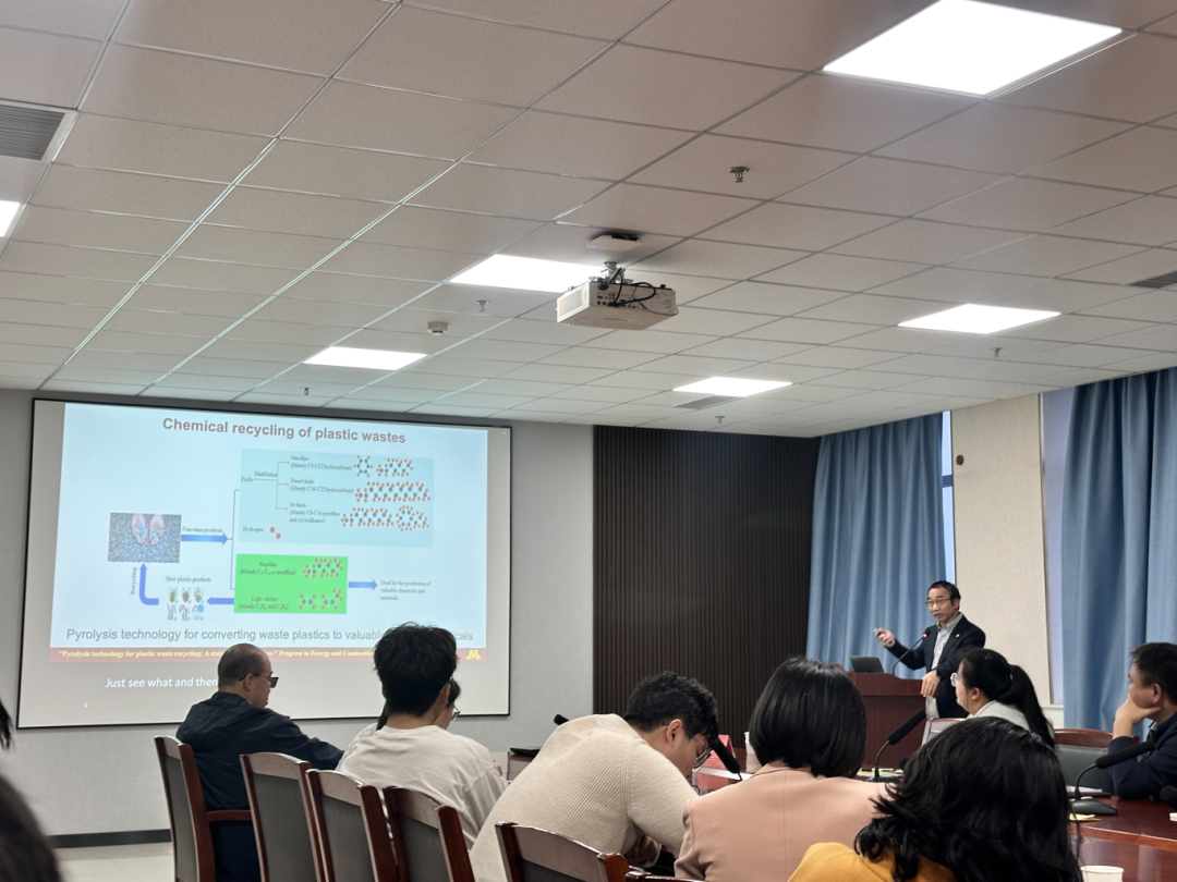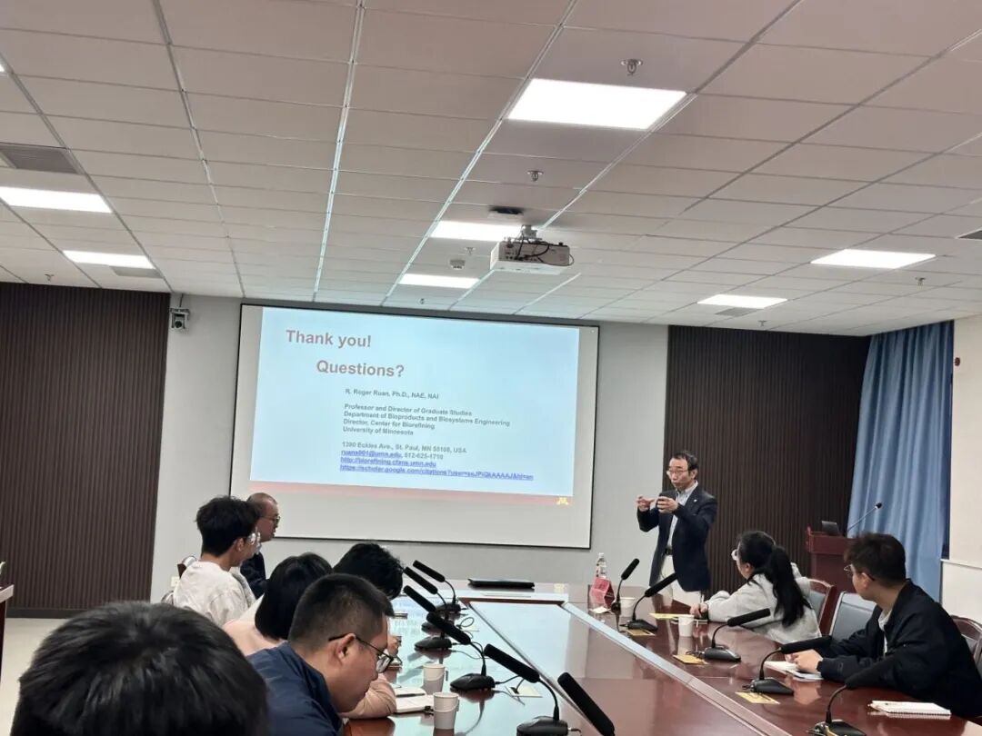 报告后,阮教授与现场的研究生们展开了深入互动,现场交流热烈。学生们积极提问,阮教授详细解答了在循环经济模式构建、生物质能源技术及其产业化应用等方面的问题,促进了学术思想的碰撞与交流。在场师生对可持续循环技术发展的理解更加深入,对相关领域的研究充满了兴趣。