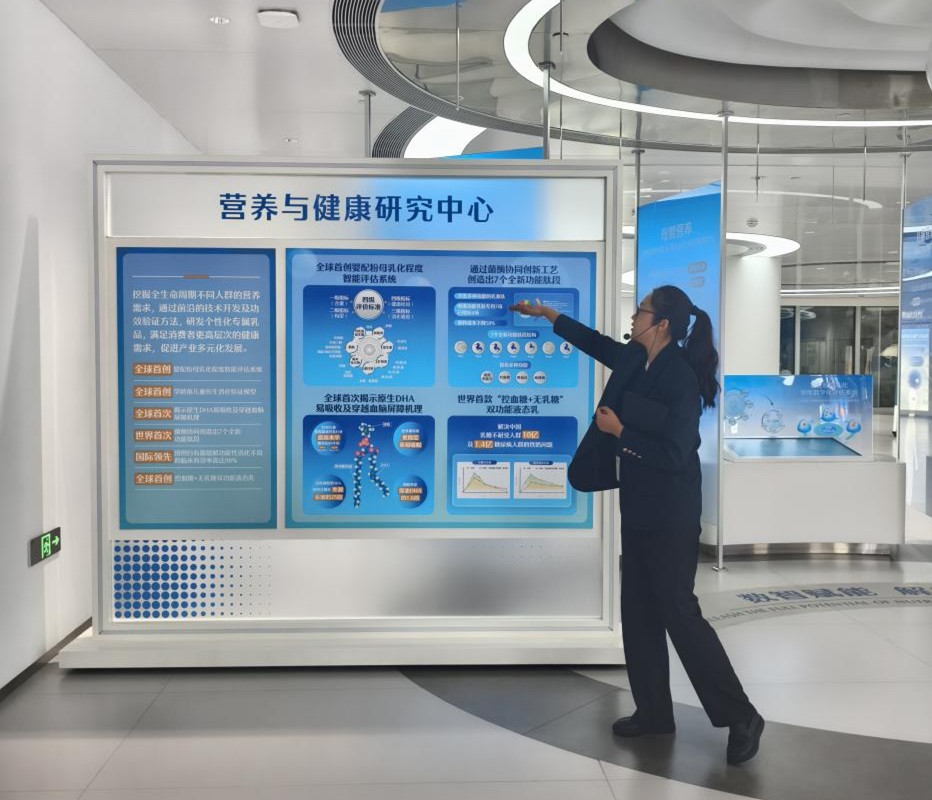 在营养与健康研究中心,工作人员展示针对不同人群营养需求的个性化乳品研发成果,直观呈现了“以消费者需求为导向”的创新理念。在奶牛繁育与养殖技术研究区,中心主导创建的“世界首个蒙古高原家畜种质资源库”以及自主研发的牧草品种,彰显了我国在乳业上游核心资源领域的自主创新实力,也更新了参观团对传统乳业重加工、轻种养的固有认知。