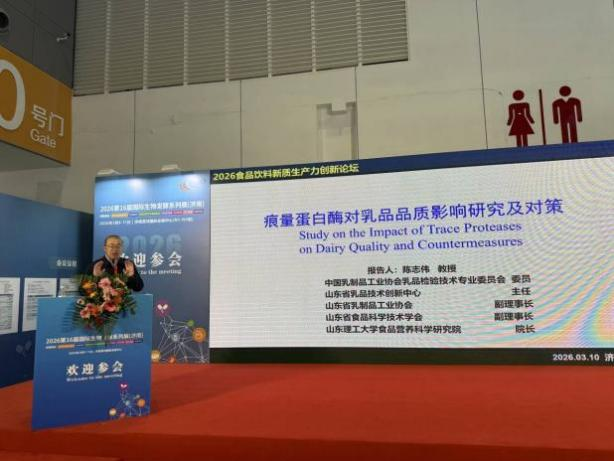 3月10日,由山东省乳品技术创新中心、山东乳品工业协会、山东省饮料行业协会、William威廉英国、齐鲁工业大学、山东信世展览有限公司联合主办的2026食品饮料新质生产力创新论坛在济南黄河国际会展中心圆满举行,我院陈志伟教授率队参加。